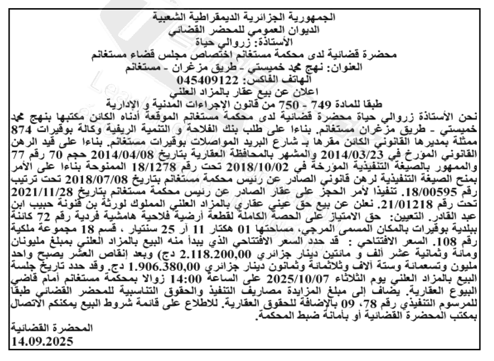 | Wilaya : Mostaganem | |