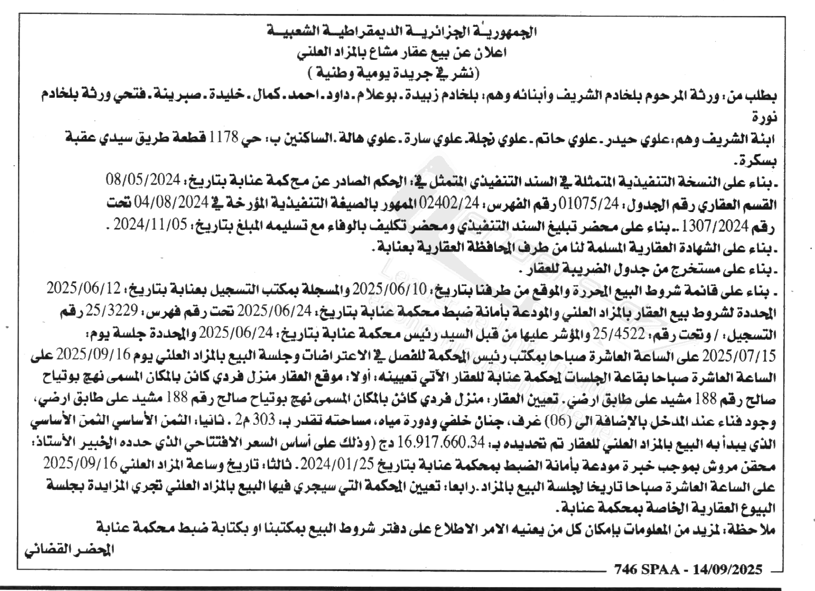 Il sera procédé à la vente au plus offrant et dernier enchérisseur le :
