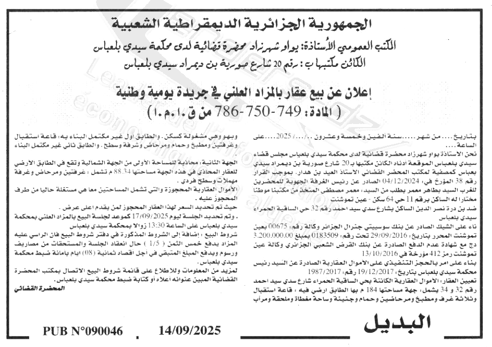 Il sera procédé à la vente au plus offrant et dernier enchérisseur le :