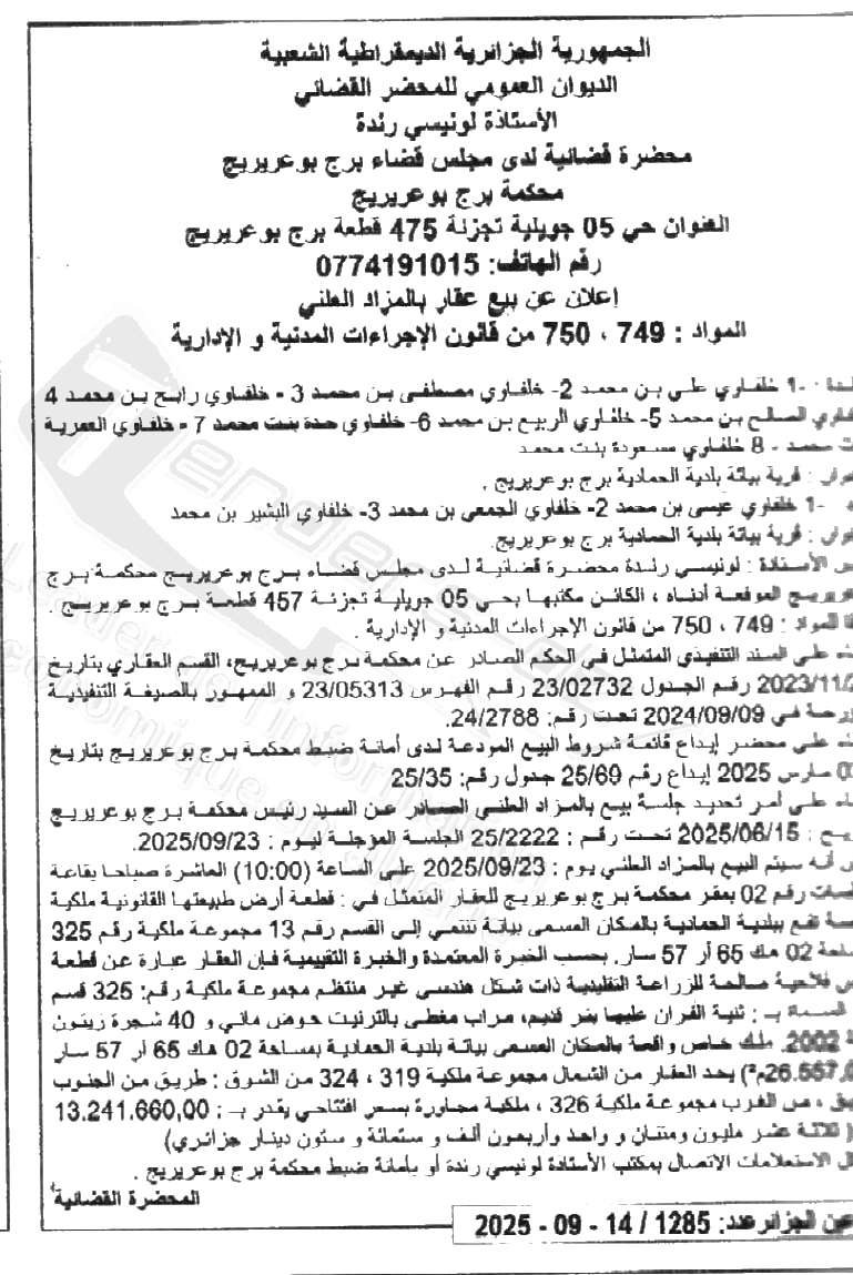 Il sera procédé à la vente au plus offrant et dernier enchérisseur le :
