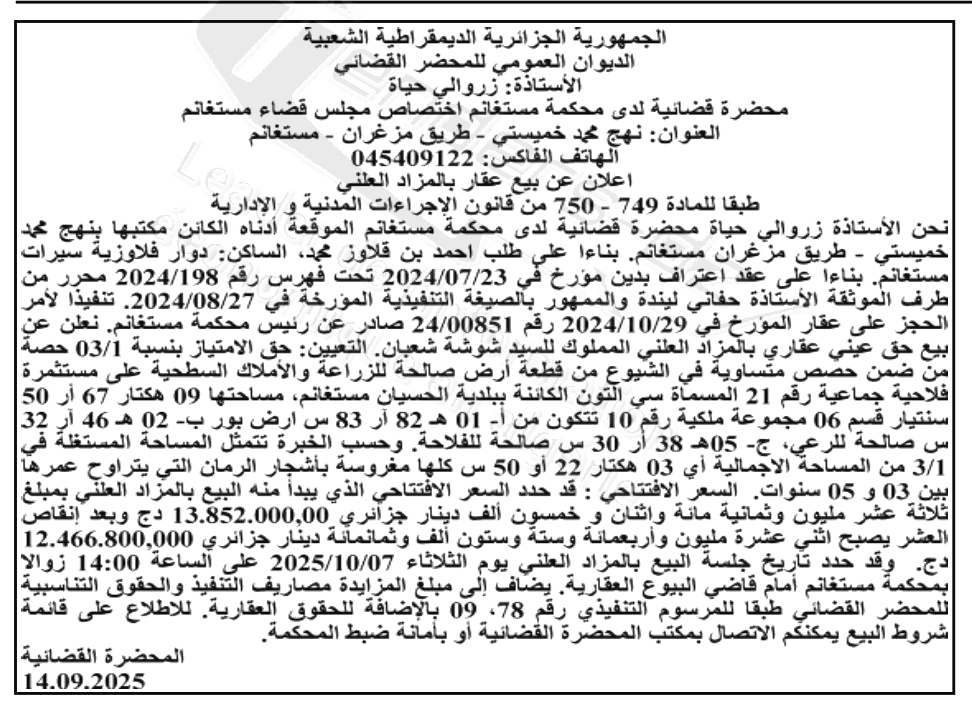 Il sera procédé à la vente au plus offrant et dernier enchérisseur le :