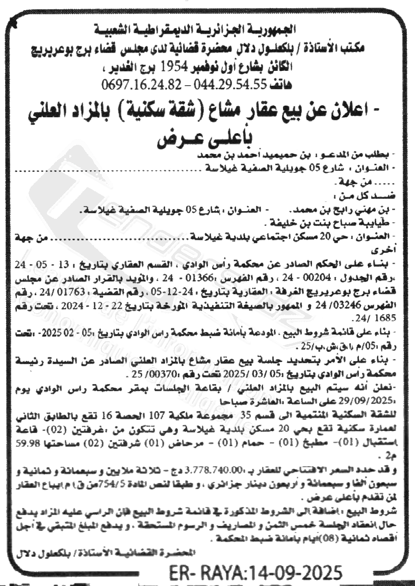 Il sera procédé à la vente au plus offrant et dernier enchérisseur le :