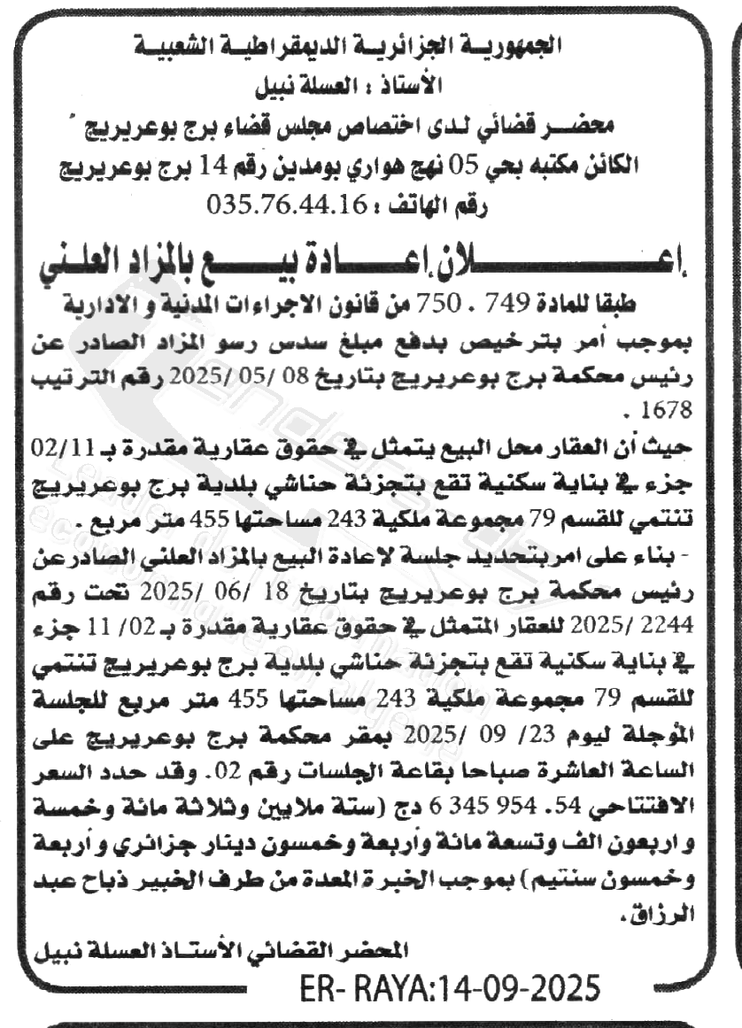 Il sera procédé à la vente au plus offrant et dernier enchérisseur le :