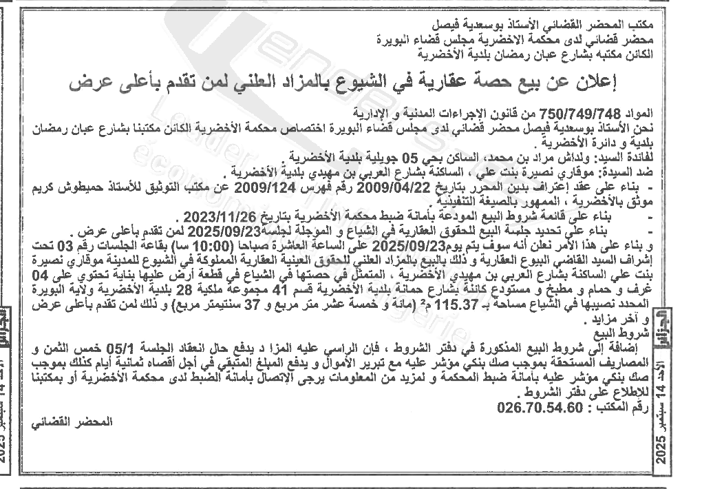 Il sera procédé à la vente au plus offrant et dernier enchérisseur le :