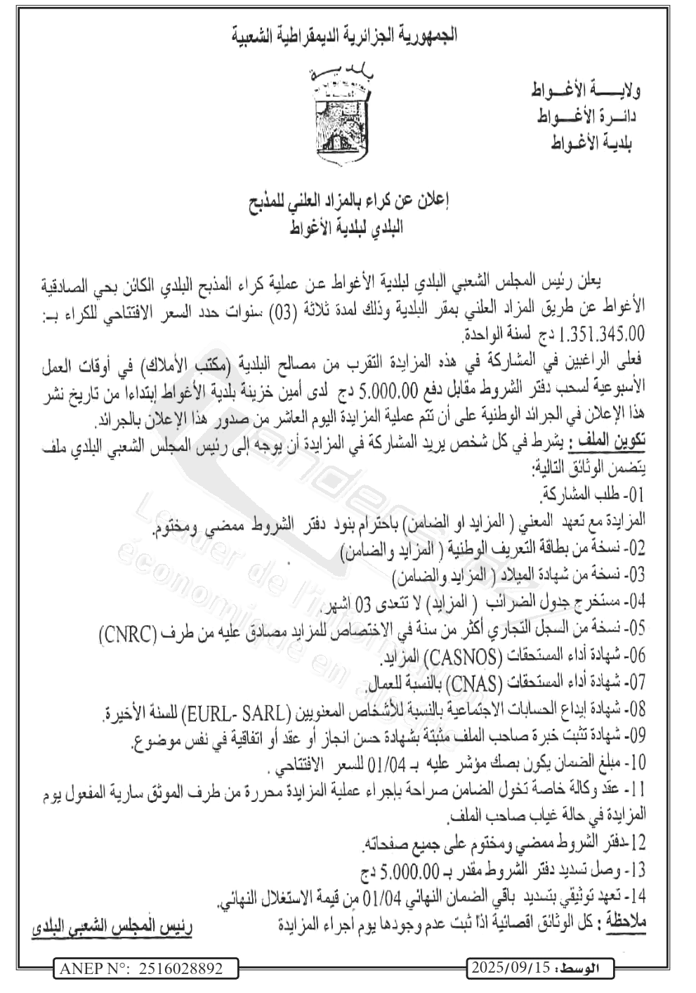 | (*) LA DATE EST DONNÉE À TITRE INDICATIF, VEUILLEZ LA VÉRIFIER LORS DU RETRAIT DU CAHIER DES CHARGES OU AUPRÈS DE L\'ÉMETTEUR | |