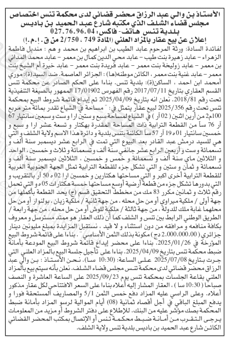 Il sera procédé à la vente au plus offrant et dernier enchérisseur le :