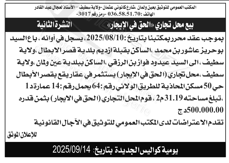 Il sera procédé à la vente au plus offrant et dernier enchérisseur le :