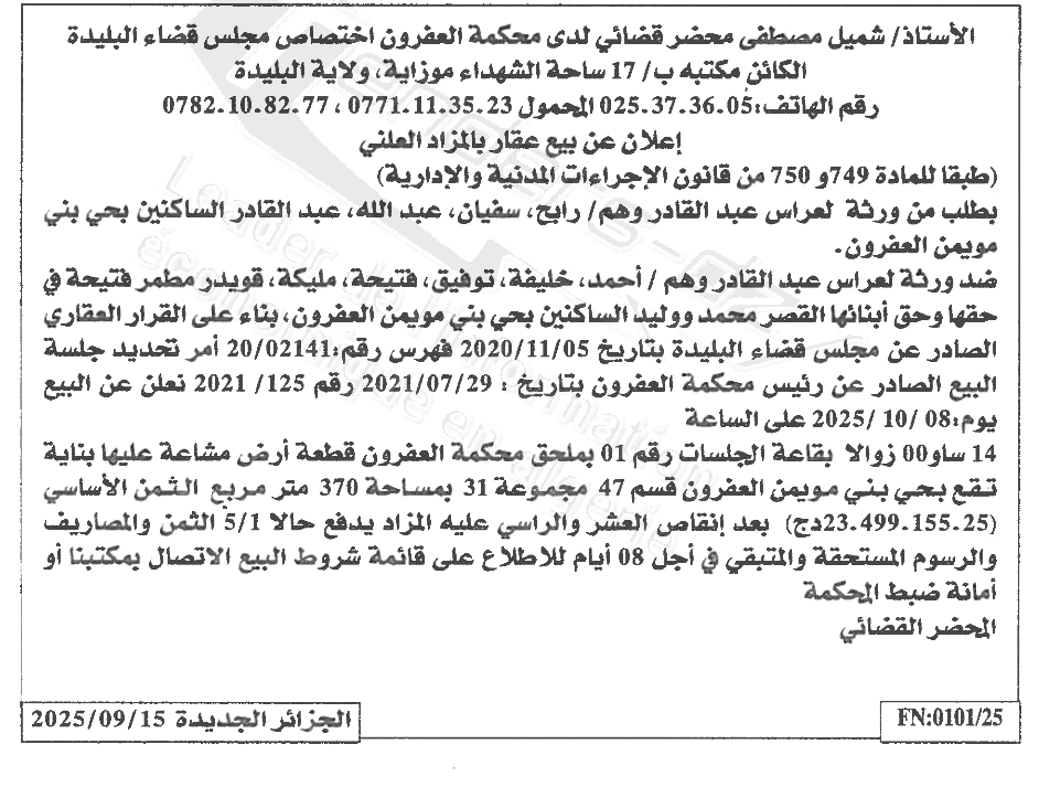 | Paru dans le journal : الجزائر الجديدة | |