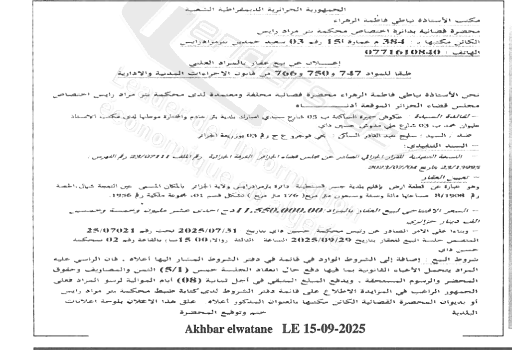 Il sera procédé à la vente au plus offrant et dernier enchérisseur le :