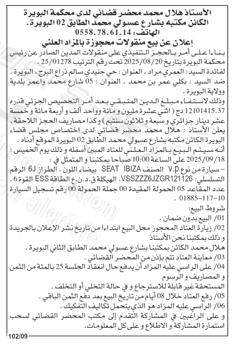 Il sera procédé à la vente au plus offrant et dernier enchérisseur le :