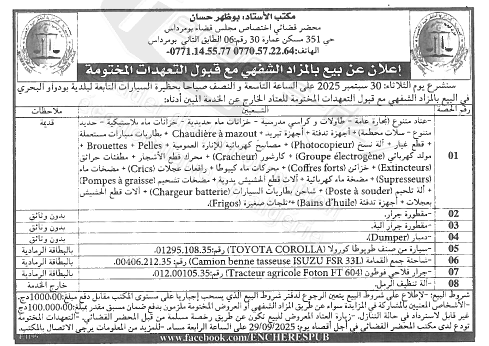 Il sera procédé à la vente au plus offrant et dernier enchérisseur le :