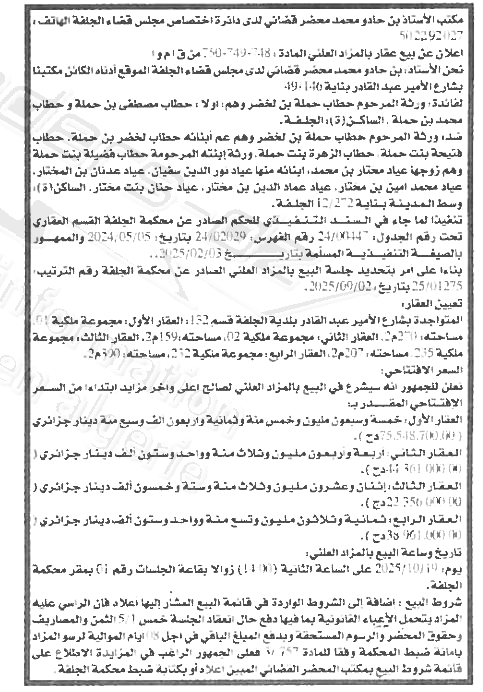 Il sera procédé à la vente au plus offrant et dernier enchérisseur le :