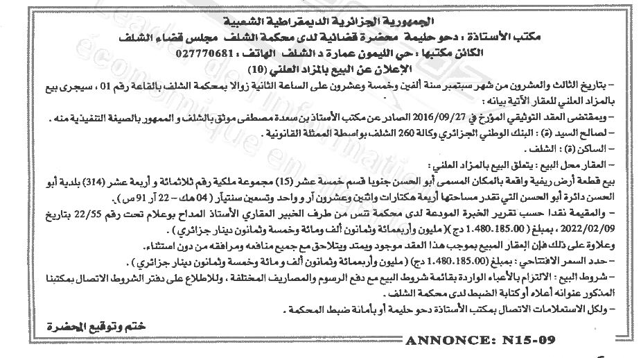 | Wilaya : Chlef | |