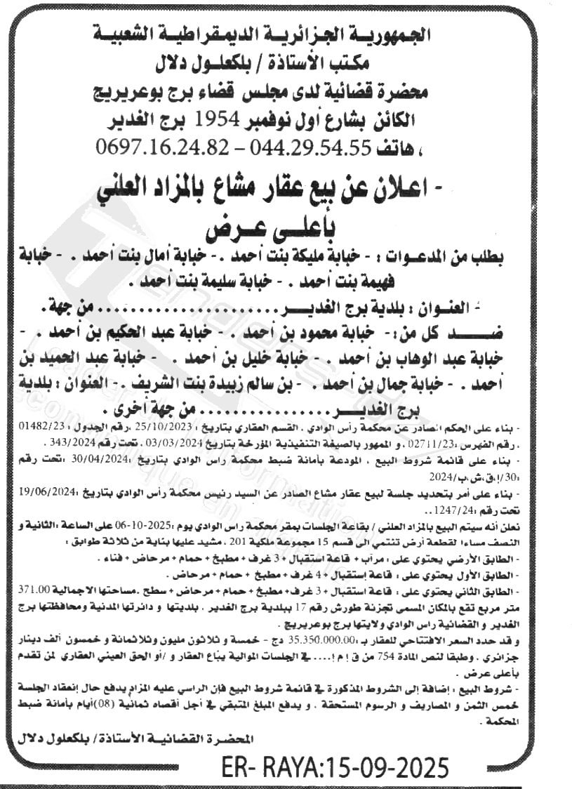 Il sera procédé à la vente au plus offrant et dernier enchérisseur le :
