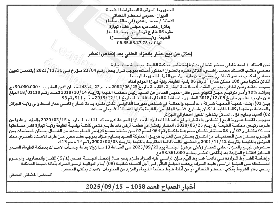 Il sera procédé à la vente au plus offrant et dernier enchérisseur le :