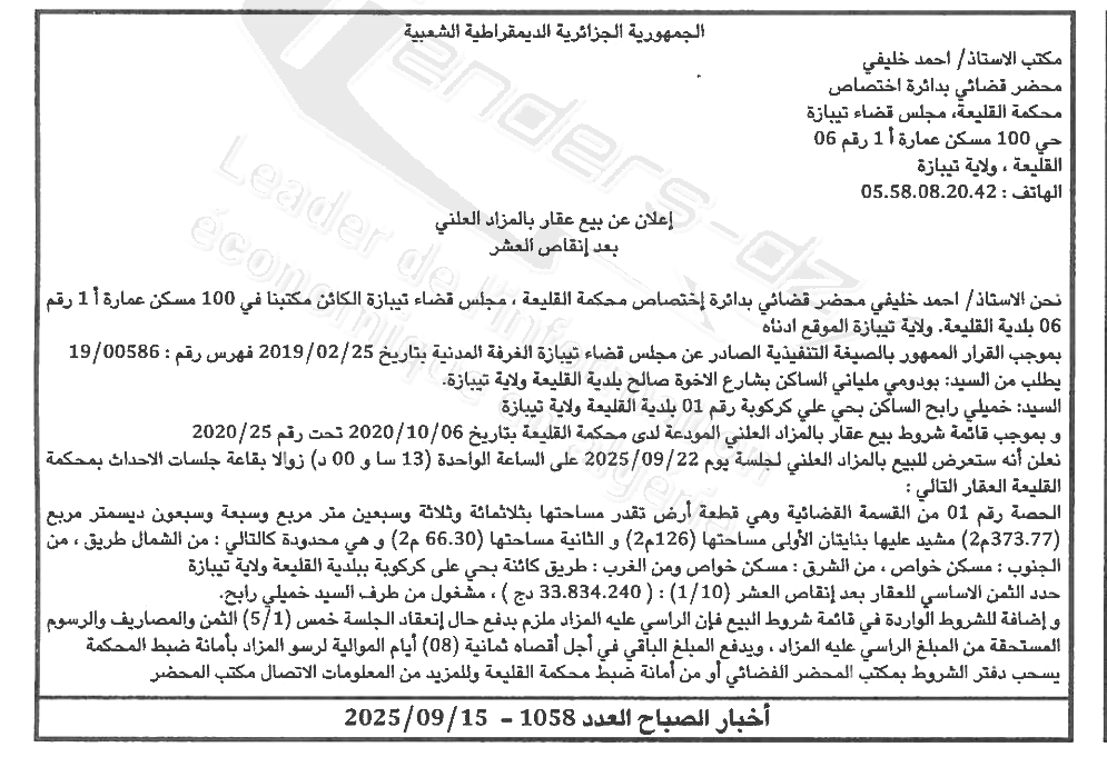 Il sera procédé à la vente au plus offrant et dernier enchérisseur le :