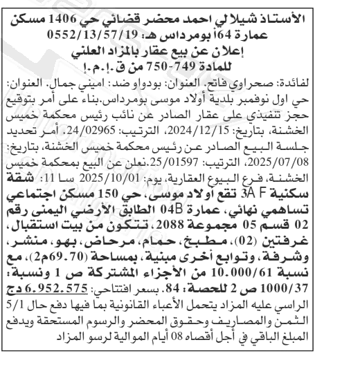 | Objet: Vente d'un immobiliers | |