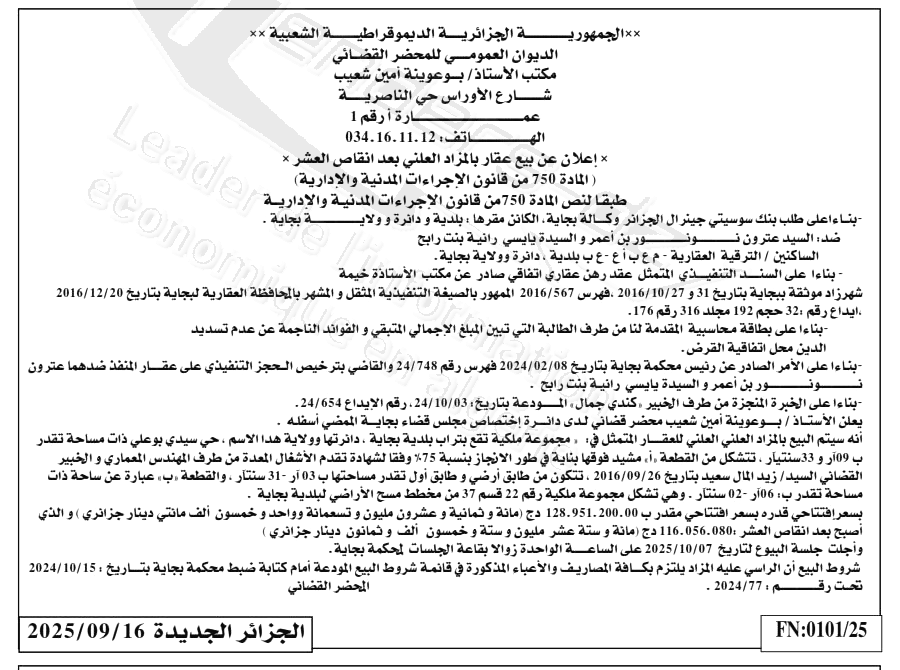 Il sera procédé à la vente au plus offrant et dernier enchérisseur le :