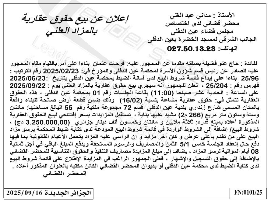| Paru dans le journal : الجزائر الجديدة | |