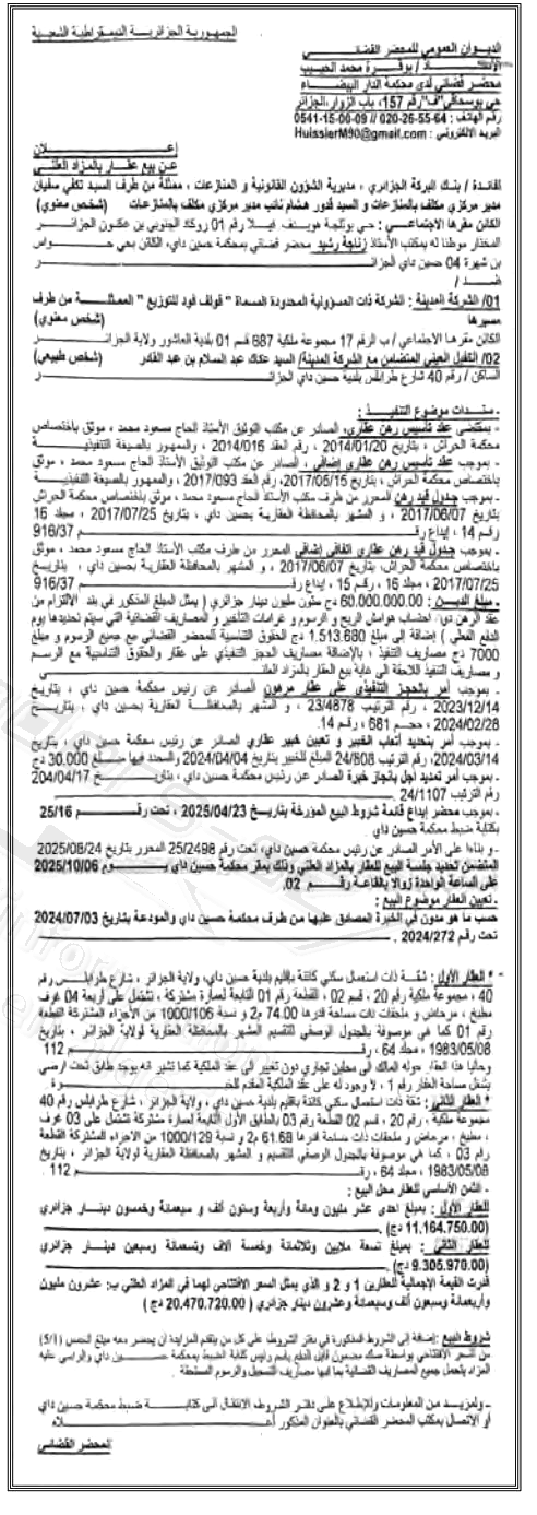 Il sera procédé à la vente au plus offrant et dernier enchérisseur le :