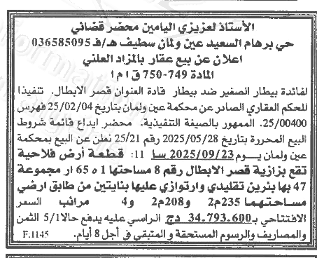 Il sera procédé à la vente au plus offrant et dernier enchérisseur le :