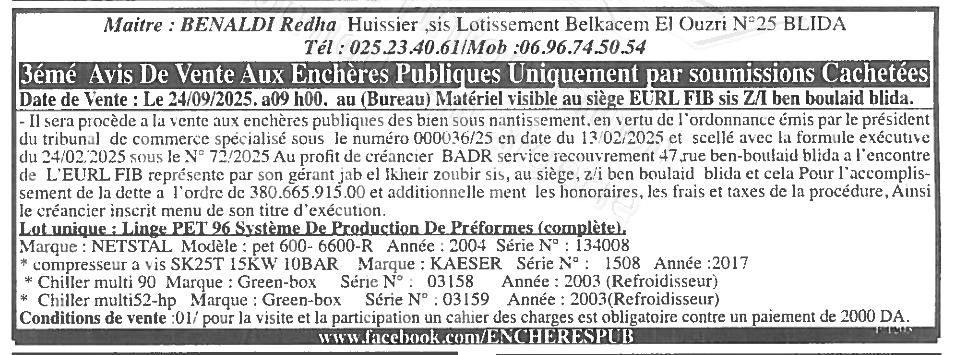 Il sera procédé à la vente au plus offrant et dernier enchérisseur le :