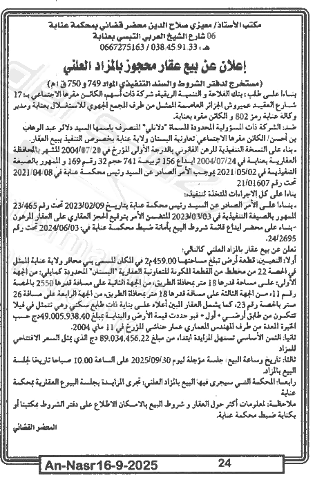 Il sera procédé à la vente au plus offrant et dernier enchérisseur le :