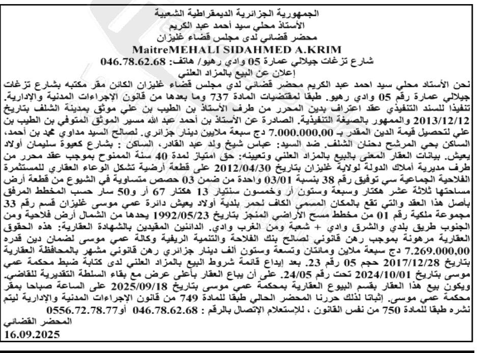 Il sera procédé à la vente au plus offrant et dernier enchérisseur le :