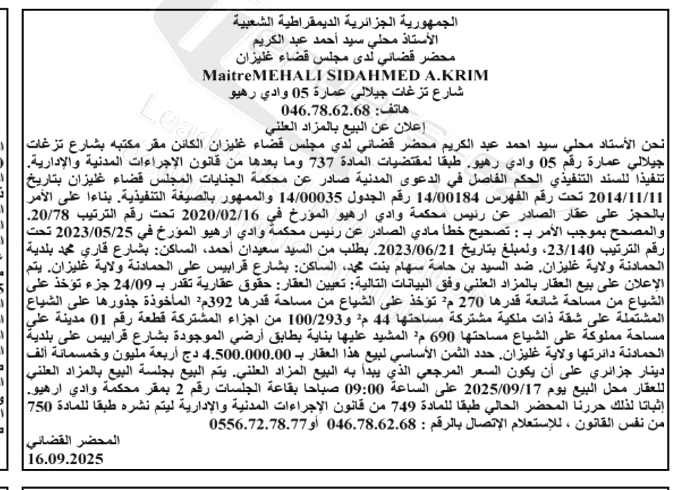| Objet: Vente d'un immobilier | |