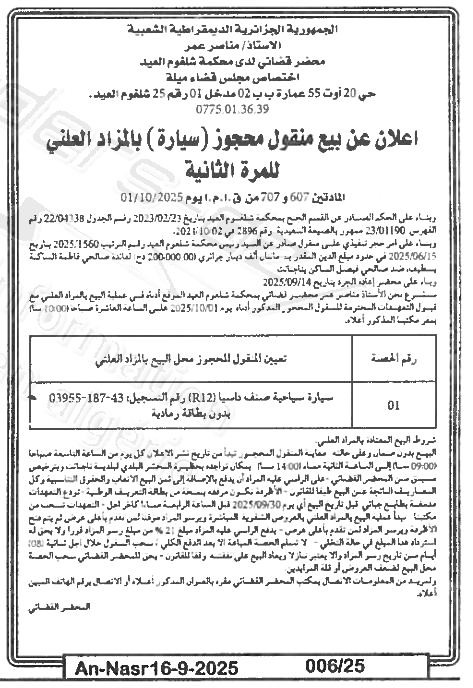 Il sera procédé à la vente au plus offrant et dernier enchérisseur le :