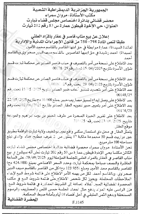 Il sera procédé à la vente au plus offrant et dernier enchérisseur le :