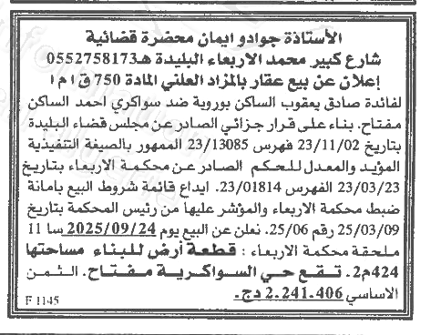 Il sera procédé à la vente au plus offrant et dernier enchérisseur le :