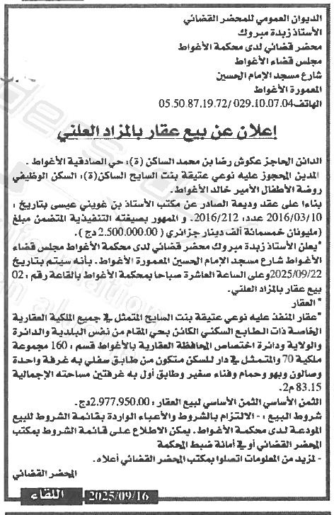 Il sera procédé à la vente au plus offrant et dernier enchérisseur le :