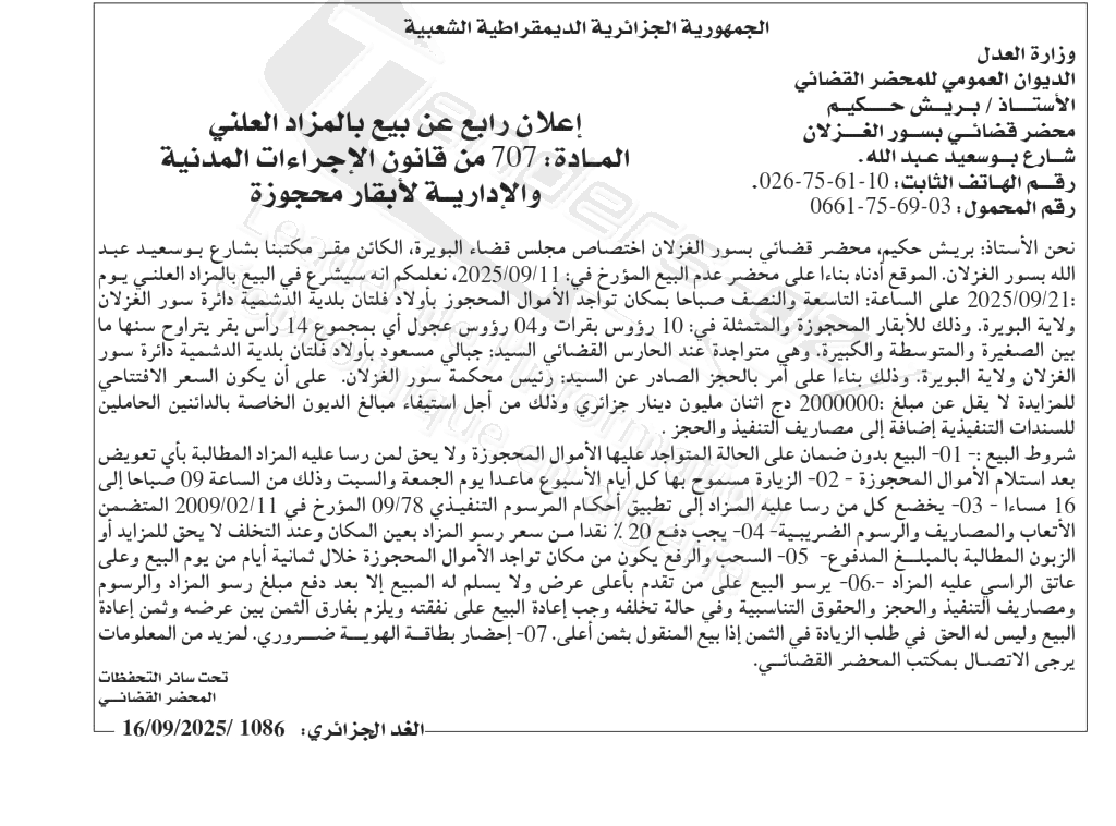 Il sera procédé à la vente au plus offrant et dernier enchérisseur le :