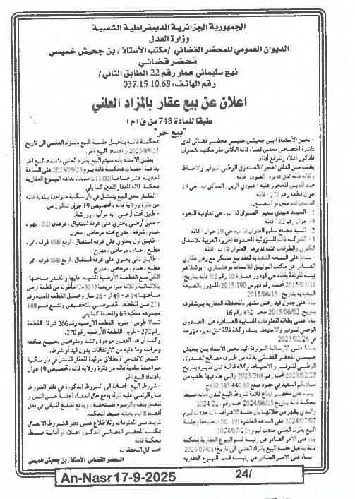 Il sera procédé à la vente au plus offrant et dernier enchérisseur le :