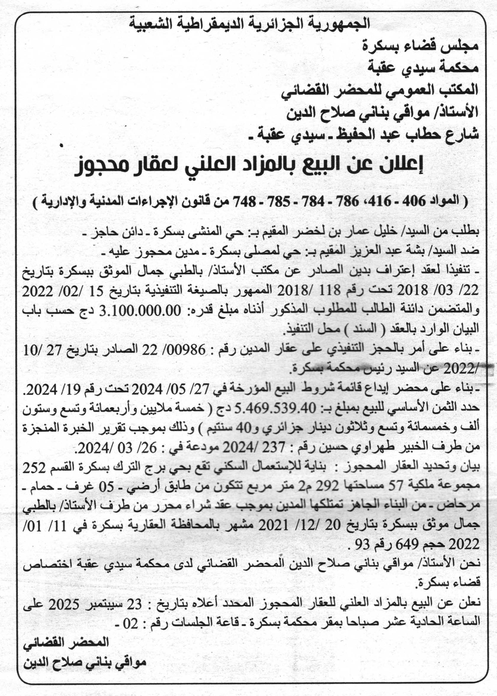 | Objet: Vente d'un immobilier | |