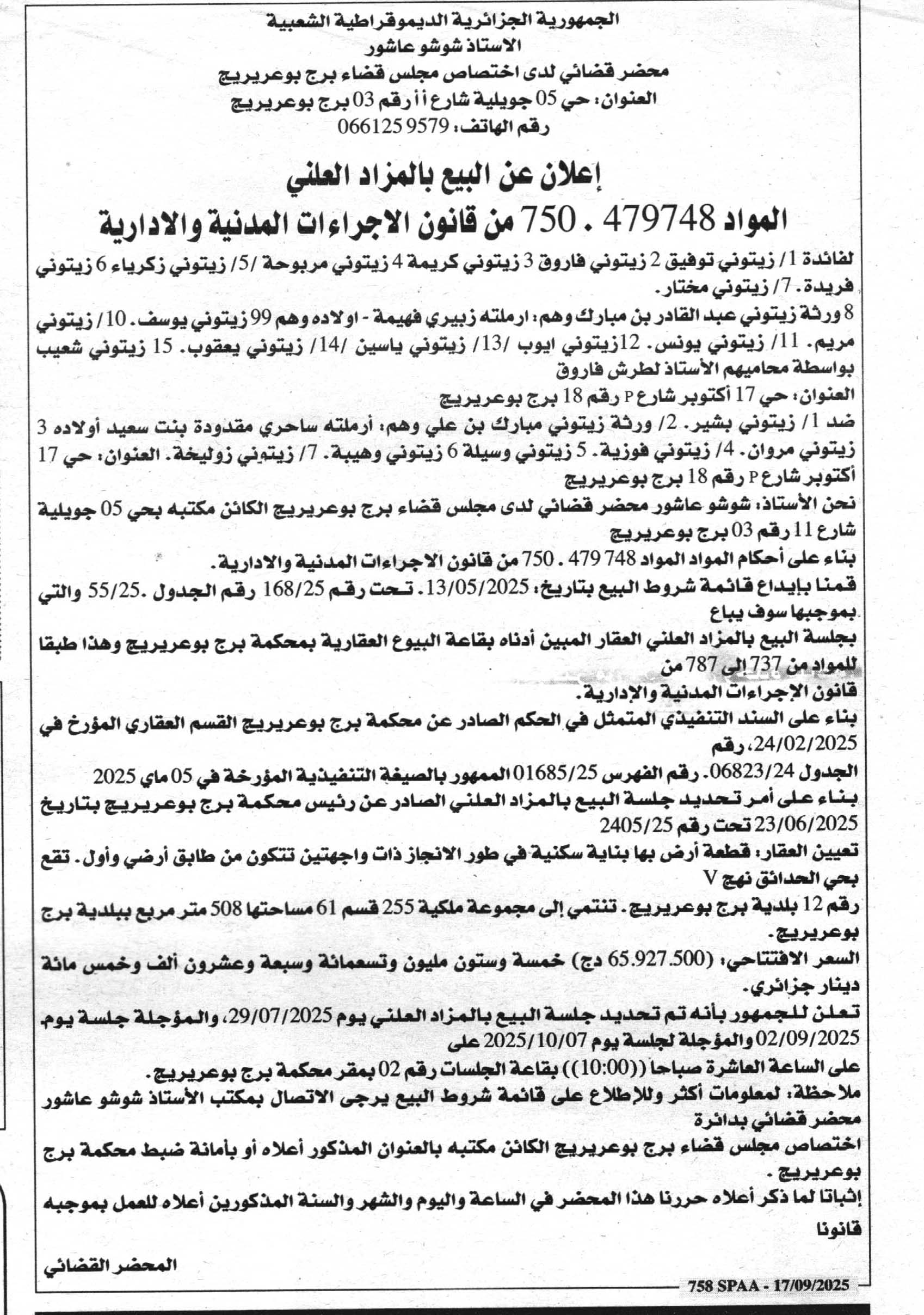 Il sera procédé à la vente au plus offrant et dernier enchérisseur le :