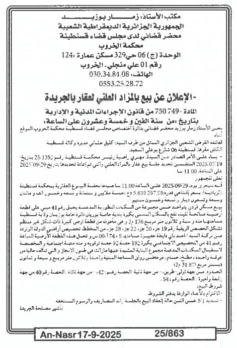Il sera procédé à la vente au plus offrant et dernier enchérisseur le :