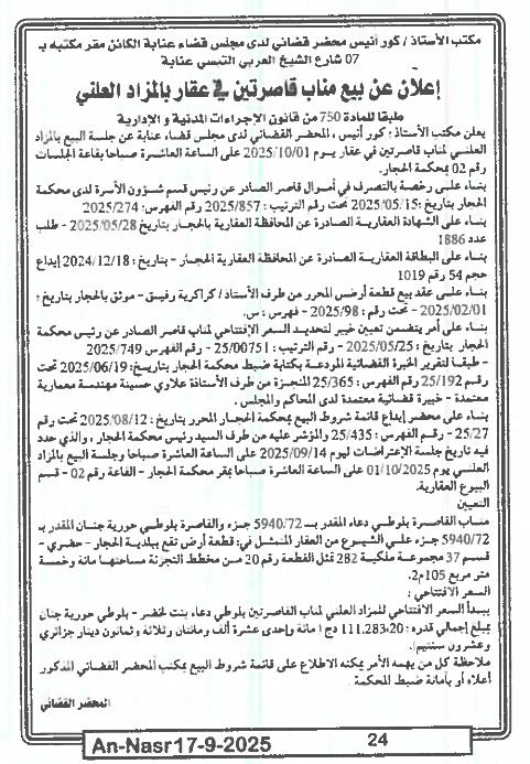 Il sera procédé à la vente au plus offrant et dernier enchérisseur le :