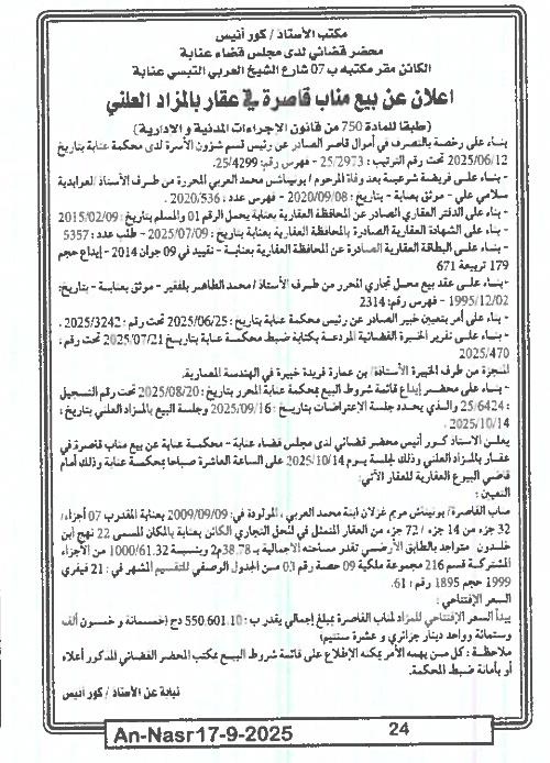 | Paru dans le journal : النصر | |