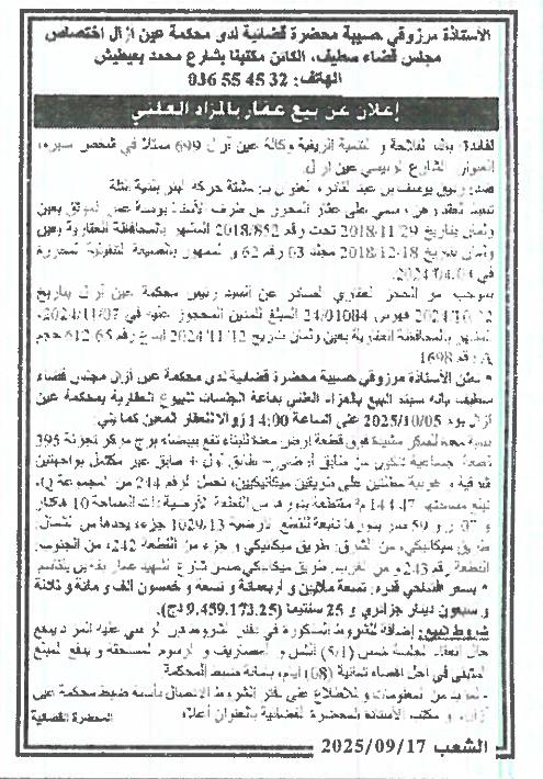 Il sera procédé à la vente au plus offrant et dernier enchérisseur le :