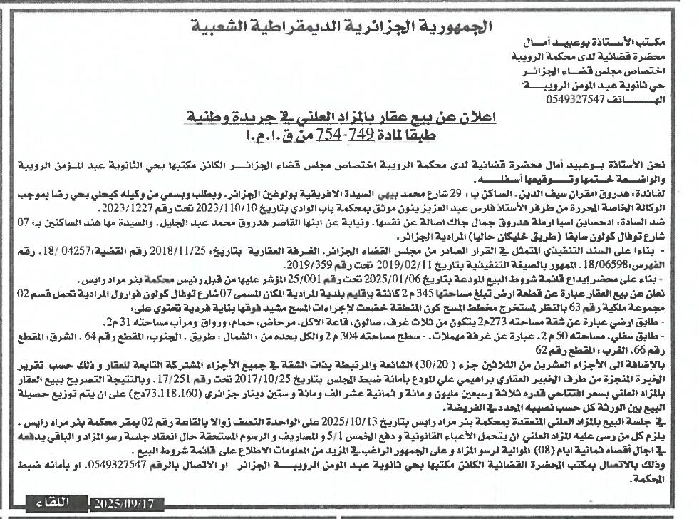 Il sera procédé à la vente au plus offrant et dernier enchérisseur le :