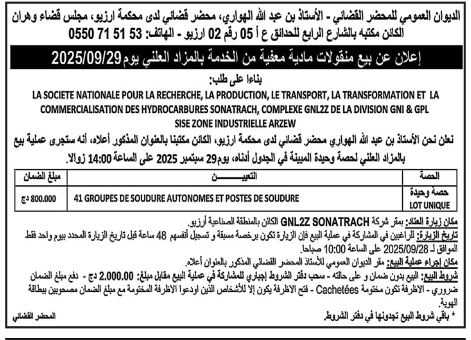 Il sera procédé à la vente au plus offrant et dernier enchérisseur le :