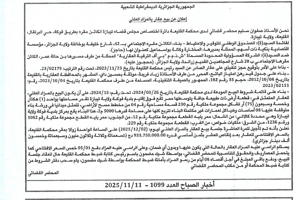 Il sera procédé à la vente au plus offrant et dernier enchérisseur le :