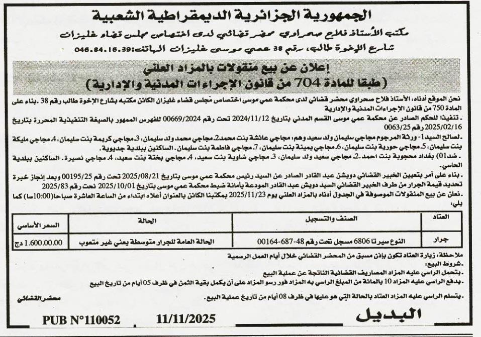 Il sera procédé à la vente au plus offrant et dernier enchérisseur le :
