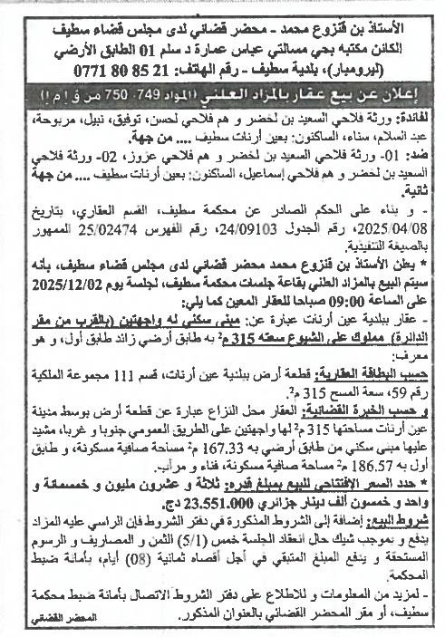 Il sera procédé à la vente au plus offrant et dernier enchérisseur le :