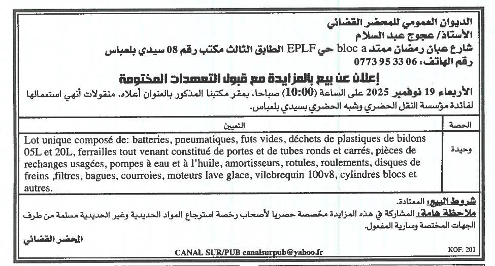 Il sera procédé à la vente au plus offrant et dernier enchérisseur le :