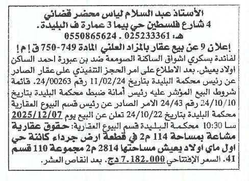 Il sera procédé à la vente au plus offrant et dernier enchérisseur le :