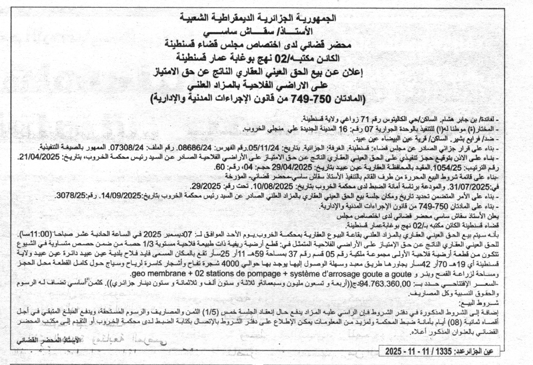 Il sera procédé à la vente au plus offrant et dernier enchérisseur le :