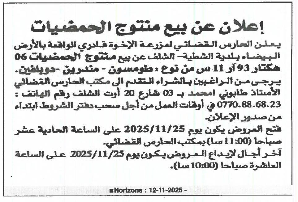 Il sera procédé à la vente au plus offrant et dernier enchérisseur le :